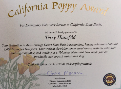 - Anza Borrego Desert Natural History Association Naturalist and Trip Leader 2012 to present